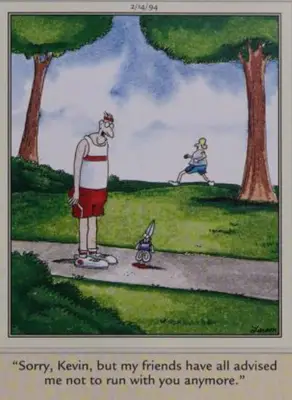 ' žēl Vīrietis, kurš valkā skriešanas kleitu, saka, ka tās pašas šķēres ir ģērbušās. Es redzu viņu sajaukt. Šis ir augsts piemērs Noņemiet sānu's Viņi mēdz personalizēt priekšmetus bez dzīves, kas norāda uz Geriju Larsonu.