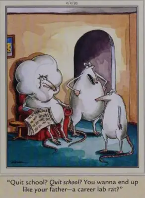 ' Vai vēlaties būt kā tēvs, kurš ir karjeras laboratorijas pele? Dusmīgo grauzēju māte kliedz uz savu brāļadēlu pēc tam, kad viņa saka, ka vēlas. Skola Kā pele mājās Nezināmu medicīnisko eksperimentu rezultātā viņš cieš no briesmīgiem faniem un cieš no smieklīgiem faniem.