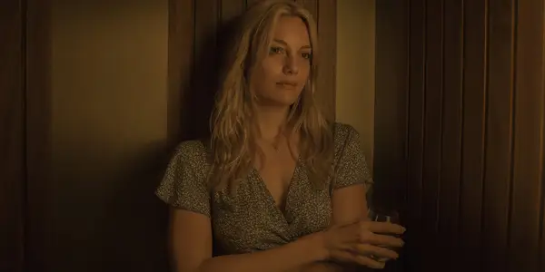 Leila Džordžs kā Katrīna Ravenskrofta, turot glāzi vīna 6. epizodē