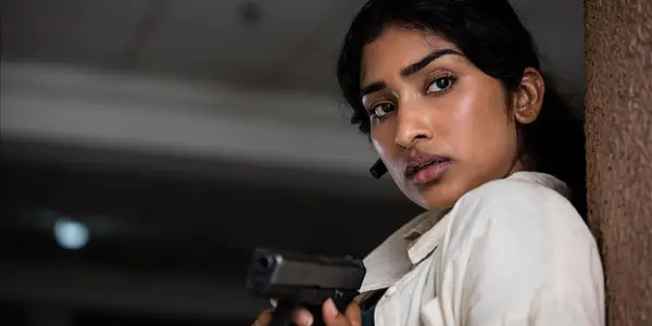 | Varada Sethu | Belinda Čandra | Varada Sethu holding a gun in the movie Strike Back Revolution |