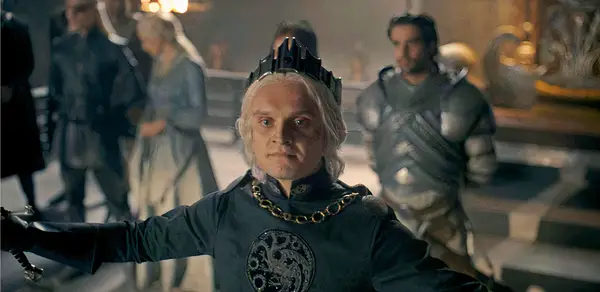 Aegon II savā kronēšanas dienā, izskatoties sajukumā, bet apmierināts ar pūķa mājā