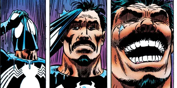 Kravens, kurš noņem Zirnekļcilvēka masku no sejas, smejoties, Kravena pēdējā medību komiksā
