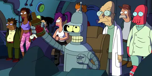 Metjū Grunting skartā radīšana Uz Simpsonu Ļoti dīvainas, rupjas un dziļas sērijas sākumā. Futurama Tas ir 90, bet tas ir godīgi 90. 3000 gadi. Tas ir inteliģents zinātnisko jēdzienu intelektuāls pētījums, piemēram, ideja, ka Šrodingera kaķis, Mobius Strip, Paradox vectēvs un Visums tiek atkārtoti. Bet viņa sirdī ir priecīga lieta par greznību un jauku portretu grupu, kas kļūst par ģimeni ar sava veida disfunkciju (kā to bieži nodrošina TV).