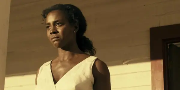 Lucky (Deborah Ayorinde) izskatās noraizējies, stāvot uz viņas lieveņa tajās